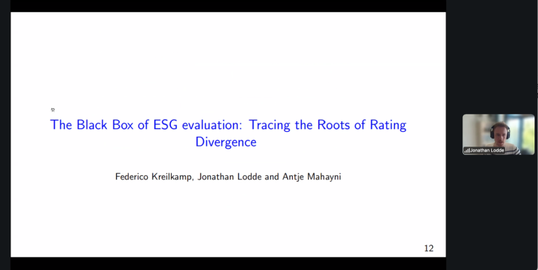 Federico Kreilkamp opened with his joint work with Prof. Antje Mahayni and Bastian Wegner, titled “ESG Ratings – Impact of Data Normalisation on Substitution Rates and Rating Inconsistency”. His talk made clear that data normalization is much more than a technical detail: it shapes how ESG indicators are traded off against each other and can materially affect firm rankings. A particularly interesting takeaway was that rank-based normalization creates non-linear, distribution-dependent trade-offs and can lead to sizable rank reversals compared with z-score normalization, especially when indicators are skewed or heavy-tailed.